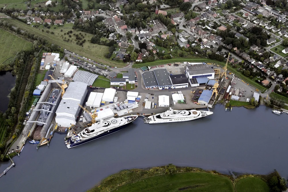 Based on the banks of the Stör river and a short distance from Hamburg, Kusch’s shipyard benefits from strategic access to major transport links and an on-site helipad — an asset for international clients and deliveries. The yard boasts two covered dry-docks (135 m / 115 m, both 22 m wide and 5.5 m deep), extensive storage sheds exceeding 2,000 m², five berths totalling 500 m, and multiple cranes. All outfitting, mechanical, and structural work is handled on-site, supported by dedicated workshops and team facilities including crew offices, galley, laundry and meeting lounges — ensuring comfort and efficiency during long-term refit or build projects. This infrastructure allows Kusch to offer comprehensive services beyond new builds: full refits, conversions, maintenance, classification and statutory works — enabling them to support a yacht through its entire lifecycle.