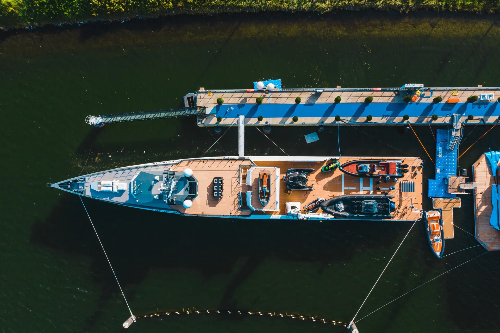 - Main deck: Includes hangar and open deck of approx. 225 m²