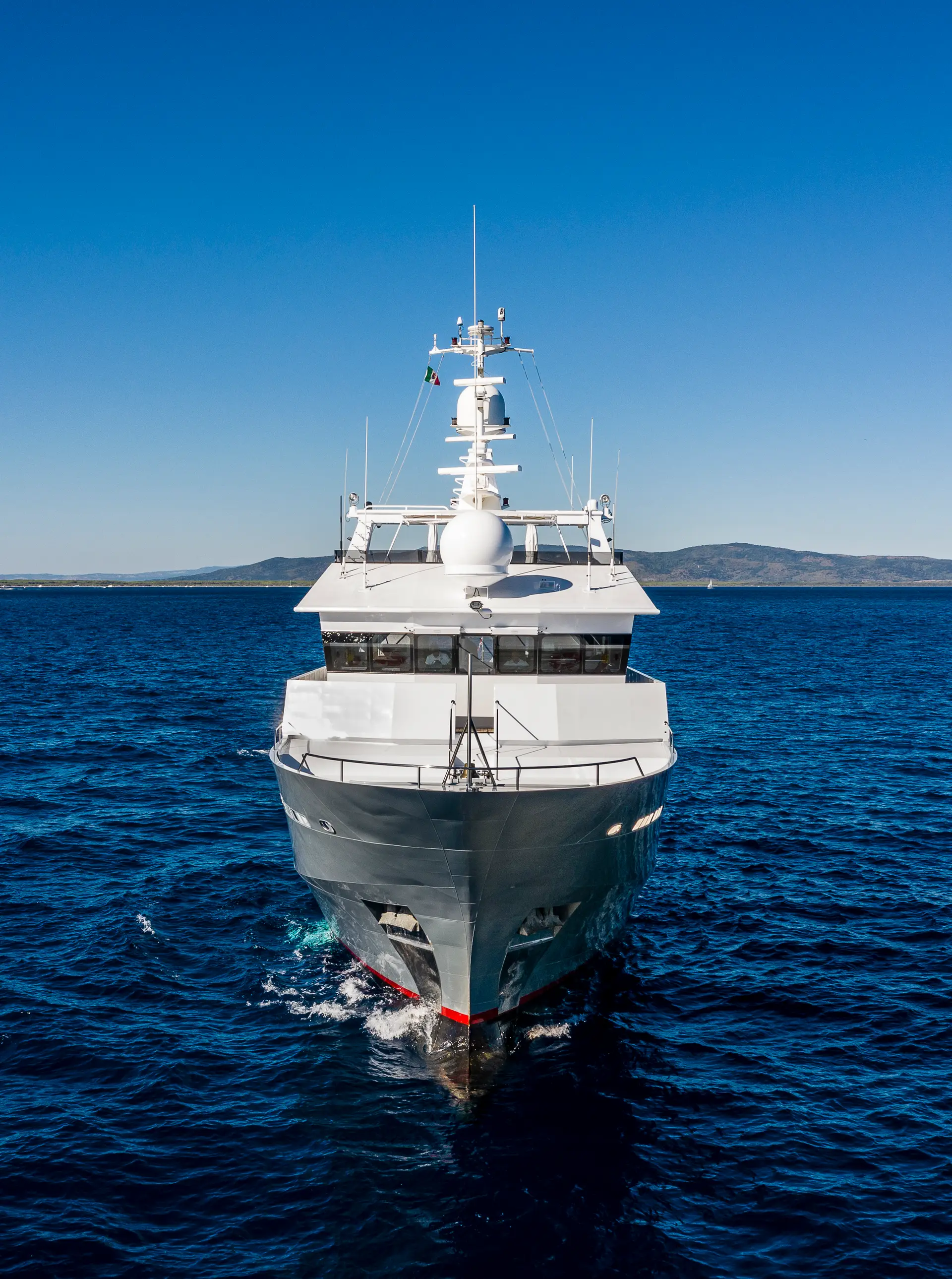 OURWAY is a 36.80 m (120'9") explorer‑yacht originally built in 2005 by Tenix Defence and fully refbuilt and refitted between 2018 and 2020, and again in 2023 arriving in essentially “new condition” with all systems renewed. With a robust, military‑origin hull, long range capability (4,800 nautical miles), and Lloyd’s classification, she is sculpted to explore distant waters in style and safety. This is a heavy duty yacht designed and built to withstand any conditions. Her versatility — from serious expedition use to comfortable cruising — sets her apart. Her robust, military-designed hull and large fin stabilizers ensure outstanding stability, while her impressive range of over 4,800 nautical miles makes her capable of exploring remote and unique destinations with ease. A standout feature is her massive beach club, perfect for fishing, diving, or simply relaxing under the stars. This versatile space, combined with her zero-speed stabilizers and vast deck areas across all levels, creates an unparalleled onboard experience.