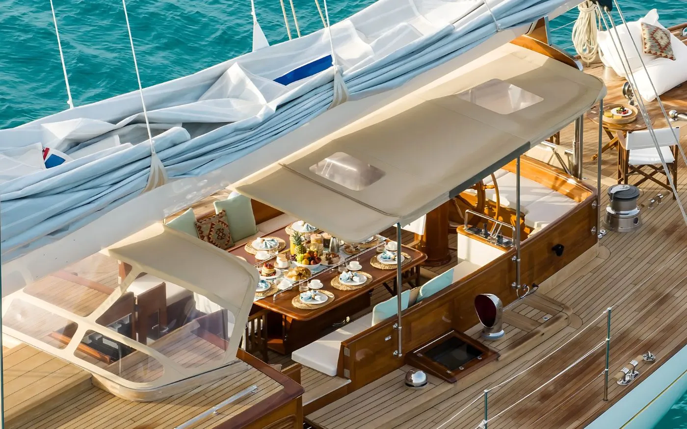 Dykstra Naval Architects crafted Windrose of Amsterdam’s exterior to balance elegance and functionality. Her sleek aluminium hull and superstructure provide stability and durability, while her large, open decks offer plenty of space for outdoor relaxation or social gatherings. The yacht’s clean, traditional lines evoke the charm of classic sailing yachts, while her modern materials and design make her a top contender in sailing events. Her layout is ideal for both competitive sailing and comfortable cruising.