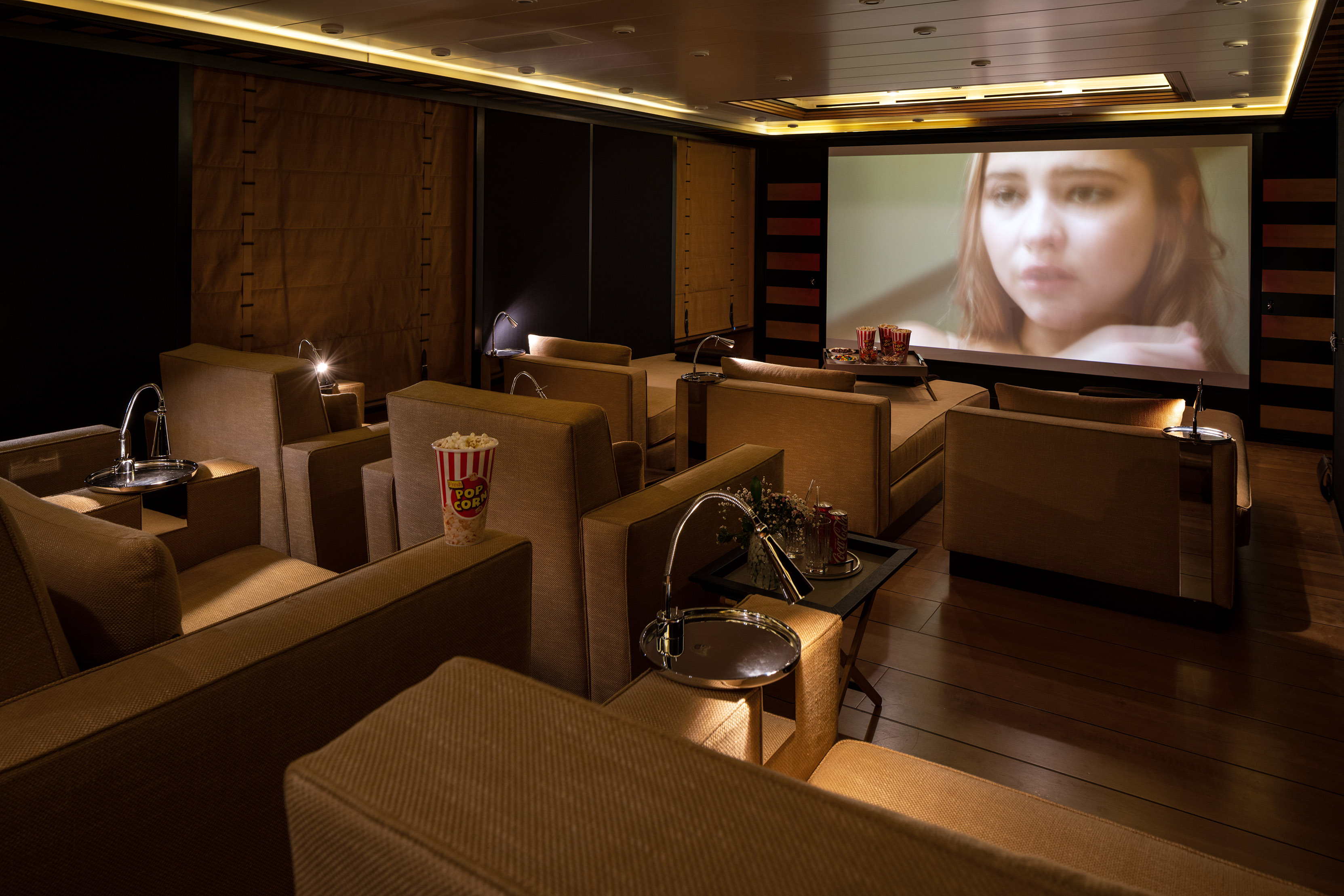 - Cinema on the main deck with lounge seating for up to 16 guests